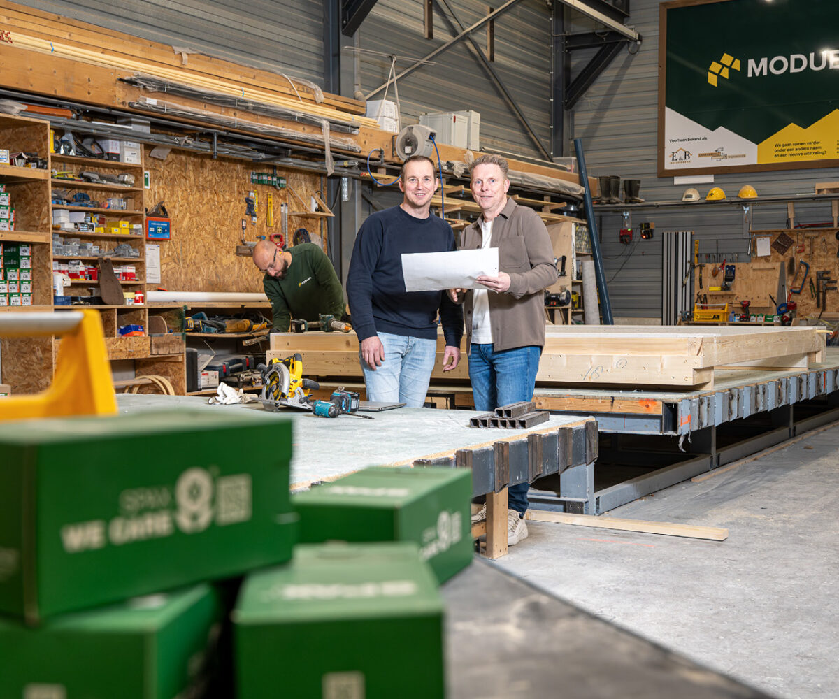 Na zes jaar kwam de eerste werknemer in dienst en vanaf dat moment zette de personeelsgroei gestaag door, ook tijdens de eerste jaren van de wereldwijde crisis, aan het begin van het vorige decennium. In 2020 nam het E&B Systeembouw over, waarmee de ondernemers de groeipotentie van prefab openlijk omarmden. Amper twee jaar later stonden de bouwers op een kruispunt: hoe verder groeien? Door samenwerking aan te gaan met een investeerder, Invez, ontstonden er weer volop kansen.