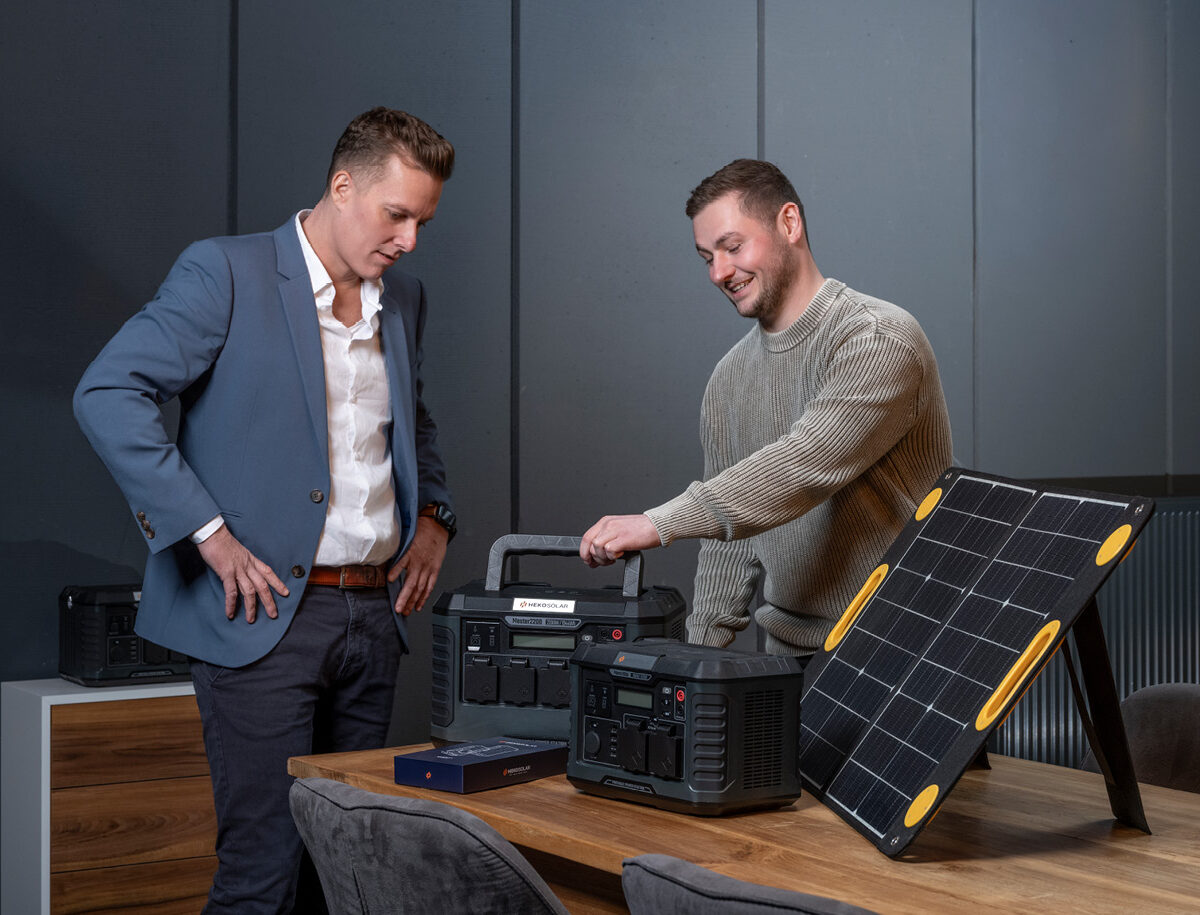 HEKO Solar maakt draagbare ‘off-grid’ poweroplossingen voor mensen die niet zonder stroom willen zitten. Van compacte powerbanks tot grotere powerstations en plug-in batterijen, waarmee meerdere apparaten tegelijk kunnen worden opgeladen. De producten zijn standaard uitgerust met een zonnepaneel, zodat ze zichzelf kunnen opladen met zonlicht. Opladen via een stekker kan ook. ‘De powerstations nemen overtollige stroom van zonnepanelen op, slaan die op en geven ‘m terug wanneer je dat nodig hebt. Ze zijn slim: als het apparaat vol is, stopt het met laden’, legt hij uit.